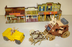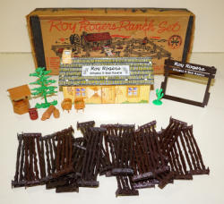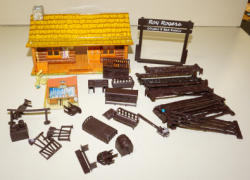 building is 27" long, nice condition, comes with some of the small accessories, not an original matched set, but looks good together