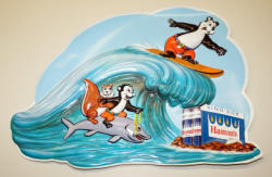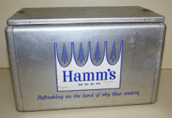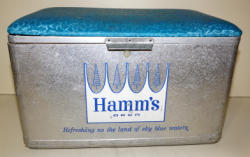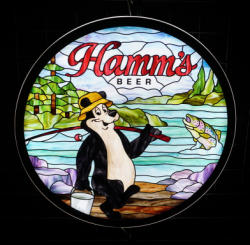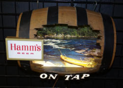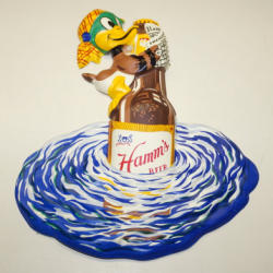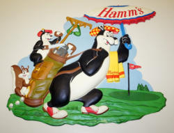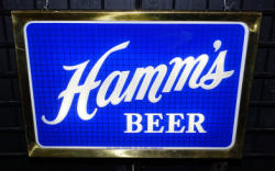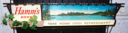 about 4'x4', professionally hand painted on plywood, great patina, does not say Hamm's, but definitely a Hamm's inspired sign!