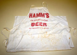 Really a nice original suit, this came from the Beer Dist. Out of Fulda, MN; has the gloves & boot covers too (not on in the pictures), some normal stains and aging, but overall nice; only set of original directions we have seen and even has the foam to make the bear suit full; comes in a Large Cardboard barrel to store and works great for it, fun piece to use or display in your Hamm's collection!
