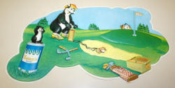 Approx 12"x22", great design, edges are a little warped and colors a slightly discolored, but a super subject matter and design