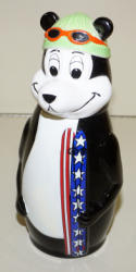 7" tall, not marked, but I assume this is a mistake or production error since the bear was not painted, mint & unique