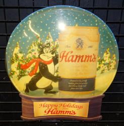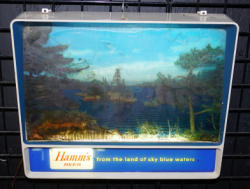 14"x20", works, great color, different version than the one earlier in the auction, different "S" in "Hamm's", frame has some age spots but nice, original back glass plate too