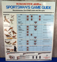 great graphics of Varmint, Big Game & Dangerous Animals w/the ammo and Mdl.70 & 94 guns! Tin over cardboard; overall rates about an 8.5 with just a few scratches and marks; 28"x23"