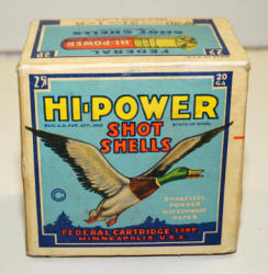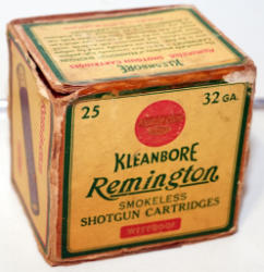 very rare box of 32 gauge shells; near full with 24 rounds of original ammo; box is rough