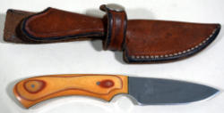 very high end knives, made in Arkansas; blade is 2.5" and 7" overall; very nice w/wood handle