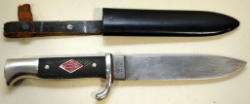 this is after the Nazi Hitler knives; made in Solingen Germany; knife is very nice; metal sheath is good but there's wear to the leather strap; blade is 5" long and 9.5" overall