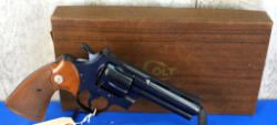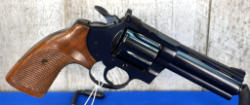 4" VR-BBL; wood checkered grips; 6-shot swing out cylinder; beautiful bluing; fired very little; comes with a non-factory box; USA; SN#38588E; A-280