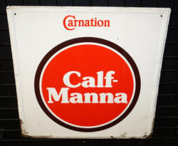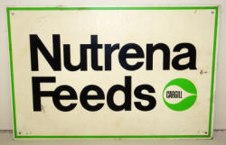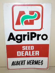 8"x36", faded vinyl letters on metal, has two large marks where a side grinder was used to grind off the bolts