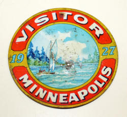 4" across, great graphics, has some age spots, might clean up