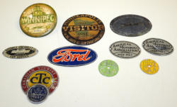 largest is 3.5" across, the celluloid ones are poor, some of the metal ones are nice, all to go