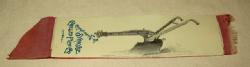 unique piece, light wear to the celluloid, nice graphics with the walking plow, overall measures 9" long