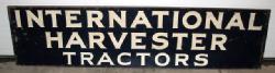 8' long, missing a piece out of the lower right corner and has some wear, but not too bad for a very early wood IH sign