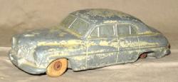 diecast steel, not a slush mold, no maker's mark, believe paint is a near mint original, steel wheels, unique car