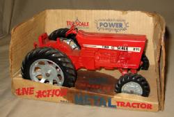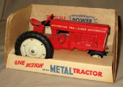Same casting as the T-S version, but has the "Farmall 504" embossed into the plastic side plates. Toy is mint, box is nice and complete, overall box rates 8.5 condition