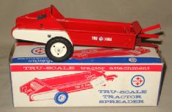Great set, toys all very nice, but have some light play wear, Tractor is about 90% and Clip Disc is about the same, rest are better condition at 95% to near mint. Box has no liners or dividers, marked on all four sides from Tru-Scale #530 and has the shipping tag on the top from Alden's Catalog Sales Store. label is dated coded for 1966, price of $8.97. Alden's was very famous for their exceptional Christmas catalogs each year. Another, possibly one-of-a kind farm set!