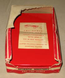 about 11" long, Stk #224, only has the rear plastic stake, 2 sides stakes are missing. Paint is near mint, needs a little cleaning, has the lead tag from the Ertl collection attached. Box has light wear, rates 8.5 condition