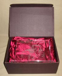 very nice, etched with smaller Mx-series tractor, 9" wide, 6.5" tall, dated with pen "1/24/98", comes in satin lined cardboard box, nice piece