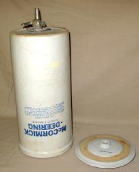 5.5" across, AA Pimper Garage, looks like the Oliver logo might have been added at a later date, but not for sure, you be the judge