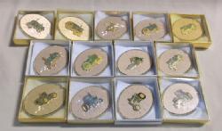 has the 1st one which is just the logo, then 1975-through 1982, then 1985 thru 1987, all nice, sells as a set for one bid
