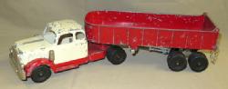 Livestock semi is plastic, Red car hauler is all metal, other car hauler is metal cab with plastic trailer, all have wear, 3x the money