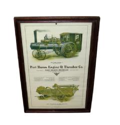 Neat piece, great graphic with a Big Oil Pull pulling a thresher across the bridge; only December left, in a nice frame; has a few age spots, but overall nice, about 17"x12"