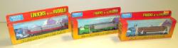 smaller set, engine is 4" long, sells as a set, box has quite abit of wear