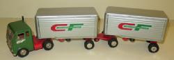 Blue one is an old repaint, other has had the top painted black, both have some warping and wear, includes a dump truck too that is warped, all to go for one bid