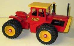 restored tractor with custom wheels added, toy looks good, pretty nice original box, box rates 90% condition
