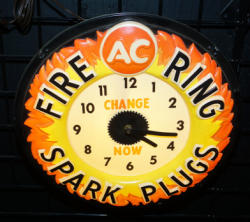 AC Fire Ring Spark Plugs Vacu-Form Plastic Clock--nice!