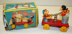 Linemar Popeye & Olive Oyl Stretchy Hand Car w/ Original box