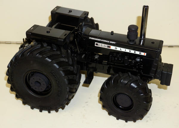 1st one made by LeMars Toy Store, Large front & rear Chucky's tires, front weights, rear weights, 3pt, all levers, Turbo II, Chrome straight pipe, Fender fuel tanks; very unique Oliver toy!
