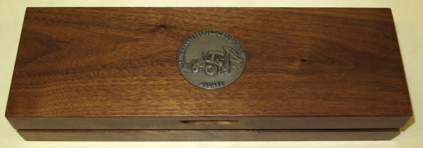 10" long knife in wood case, highly engraved & high-quality, wood box has a medal emblem in the lid, comes with the original SN# Certificate too; SN#801 of 4,000 made; but I don't think the full 4,000 were ever made; they are much rare than that, great piece