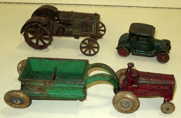 Car has broken rear fenders, tractor has broken rear fenders, AC tractor is missing headlights, all to go