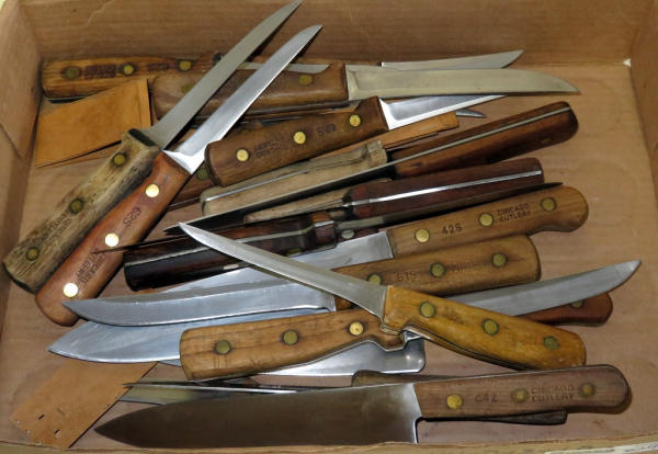 all used but very good shape, several very sharp still; blade sizes range from 3"-8"; 23 total; sell for one money