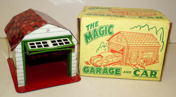11" long, no car included, just the garage, has some play wear, rates C8 condition, box is nice and complete, box rates 8 condition too