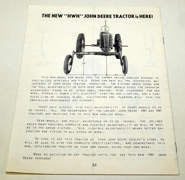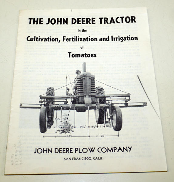 12 pages, from JD Plow Co. of California, looks to be about 1941, no date code; missing a piece off the top cover and some general wear, but a really unique and unusual piece of JD literature