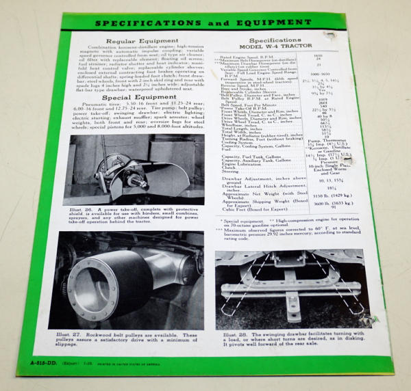 8 pages, printed in English, but for the foreign marked, binder holes are a little rough; shows the steel wheel W-4 on the inside
