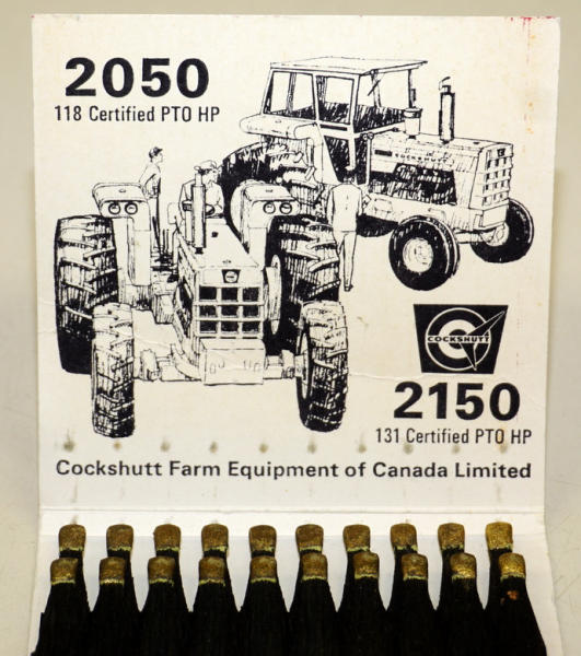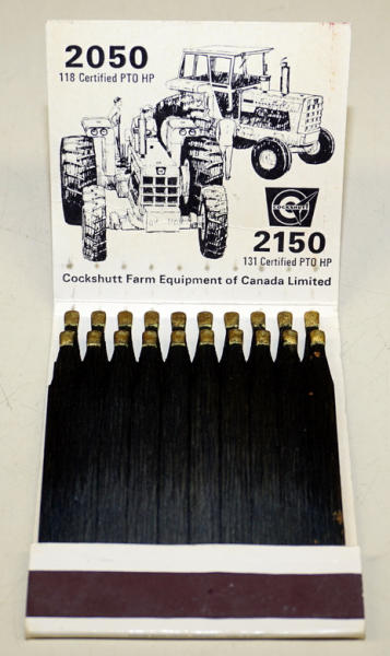 shows the 2050 & 2150 Tractors inside the cover, full, has some wear, never seen this one, about 4x the size of a normal matchbook