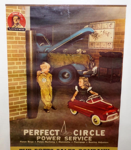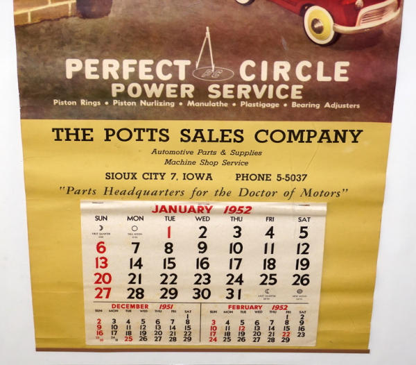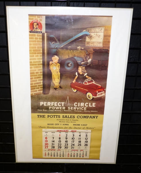 16"x34", in a poster frame, full calendar pad, top and bottom metal bands, super graphics with the kids and pedal car