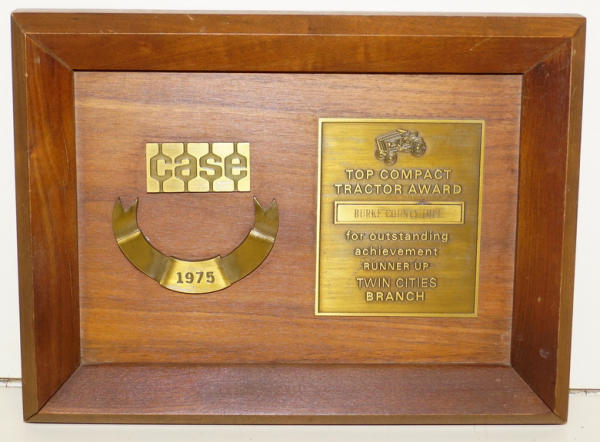 12"x9", brass on wood, nice graphics of a Garden Tractor, awarded to Burke County Imp.