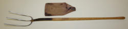17" long, 12" wide, great original patina, sweeps are tin, rest is wood, no makers mark, nice piece