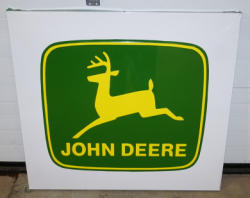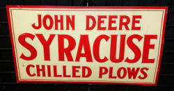 4.75"x20", very early, believe to be Pre-1900's sign, it has a really dark layer on it that might clean off with some work; has some paint starting to flake too, but overall pretty solid; We sold a different one last year in better shape; they were both found during a home remodel; not the best condition; but one of the earliest known John Deere Signs!