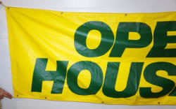 30"x5", used, has some tape residue over the sign, might clean up with some work