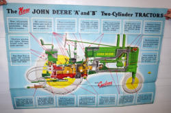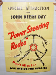45"x65", professionally framed and glass front, super color, this was never displayed in a dealership; includes the original envelope; large & impressive piece of JD advertising! Has fold marks and a few light age spots, but overall is excellent condition; No shipping, local pickup only