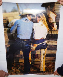 16"x34", in a poster frame, full calendar pad, top and bottom metal bands, super graphics with the kids and pedal car