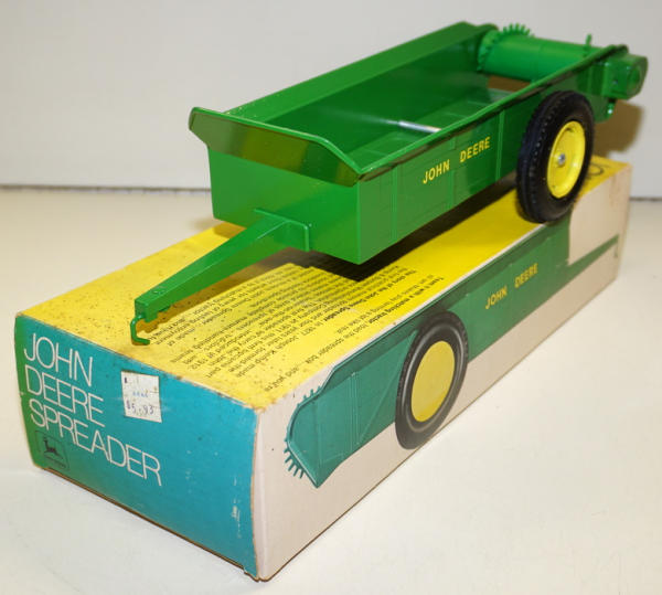 Diecast rims, no gear or PTO drive; C-hitch; mint original toy, box is nice, has pretty heavy fly specs on one end, box rates 7.75 condition