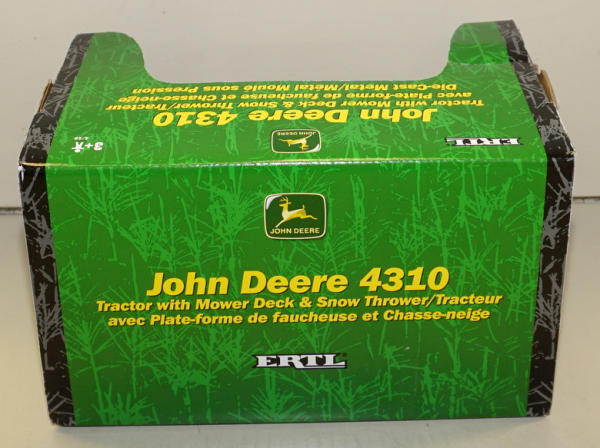 January Online Only Farm Toy & Memorabilia Auction 15 Ohio Street, Wakonda, SD 57073 Over 500 Lots! Mostly IH but inlcudes some John Deere & other items too! Featuring more great pieces from the Joe Peters Estate of Devil's Lake, ND Catalog | Terms of Auction | Print Catalog Catalog | Terms Back to Catalog #439 – JD 4310 Utility FWA w/ Front Mounted Snowblower & mower deck NIB More Details NIB Location: 15 Ohio Street, Wakonda SD, 57073 High Bid: $30.00 – jd4010 bidding history Bidding has closed on this lot Back to Catalog