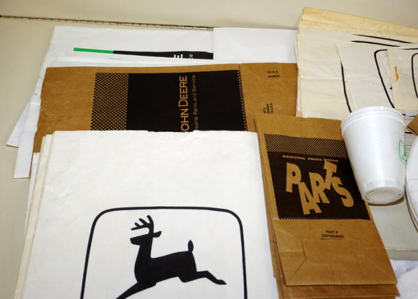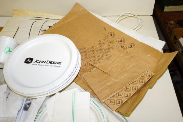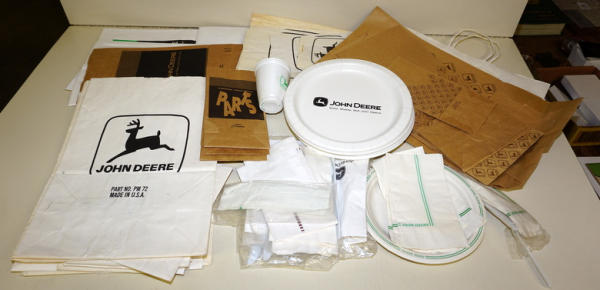 Exceptional John Deere Sign, Memorabilia & Literature Auction 15 Ohio Street, Wakonda, SD 57073 100% John Deere! Super collection of rare signs, memorabilia, & literature! All from the Steve Fangman collection of Iowa City, IA Catalog | Terms of Auction | Print Catalog Catalog | Terms Back to Catalog #965 – Large Lot of JD Paper Goods--various parts sacks, paper plates from JD Days, Napkins & more all to go More Details all to go Location: 15 Ohio Street, Wakonda SD, 57073 High Bid: $20.00 – deereboy1010 bidding history Bidding has closed on this lot Back to Catalog