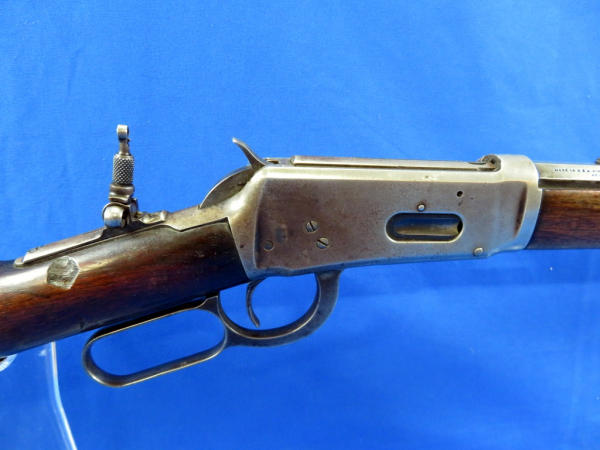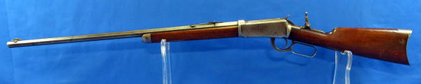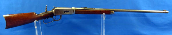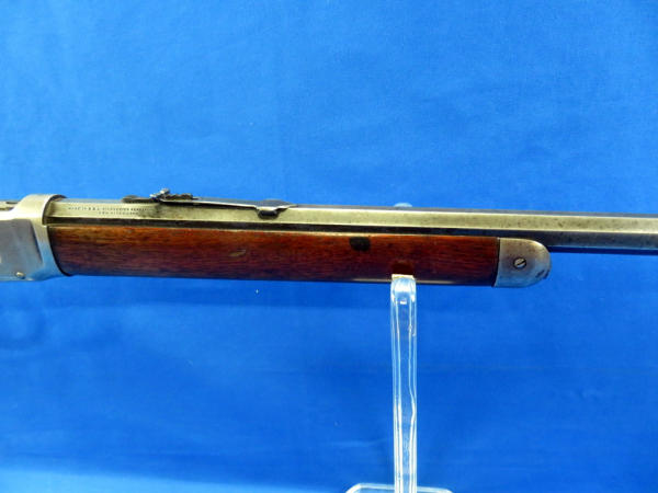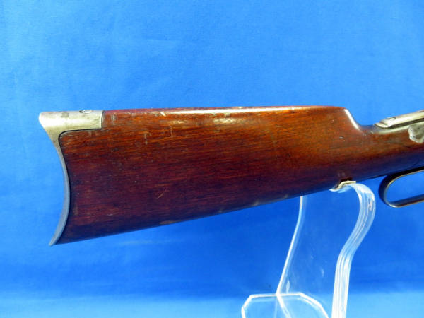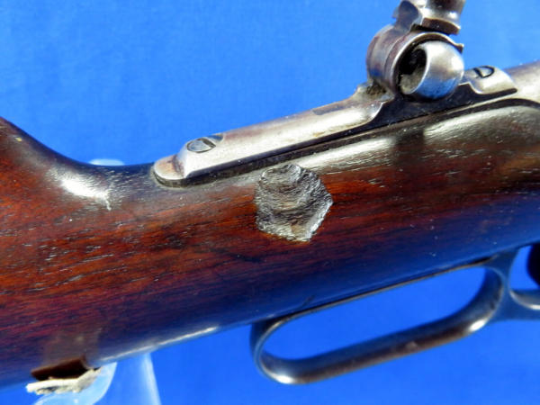 26" Oct. BBL; action catches alittle; rear tang flip up sight; wood is solid w/a large chunk missing on right side by top tang; bluing very thin; SN#148354