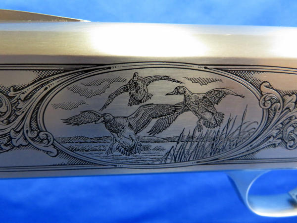 this was a short run and was produced for the 2008 SHOT Show Special, very few produced; this a 16ga. but built on a 20ga. sized frame; Nickel finish engraved receiver; Grade III wood; Mint & Unfired; original box; mult chokes; 2.75" chamber; 28" VR-BBL; bottom eject; has pheasant scene on one side & ducks on other; Sharp looking investment grade firearm! SN#09604MP121